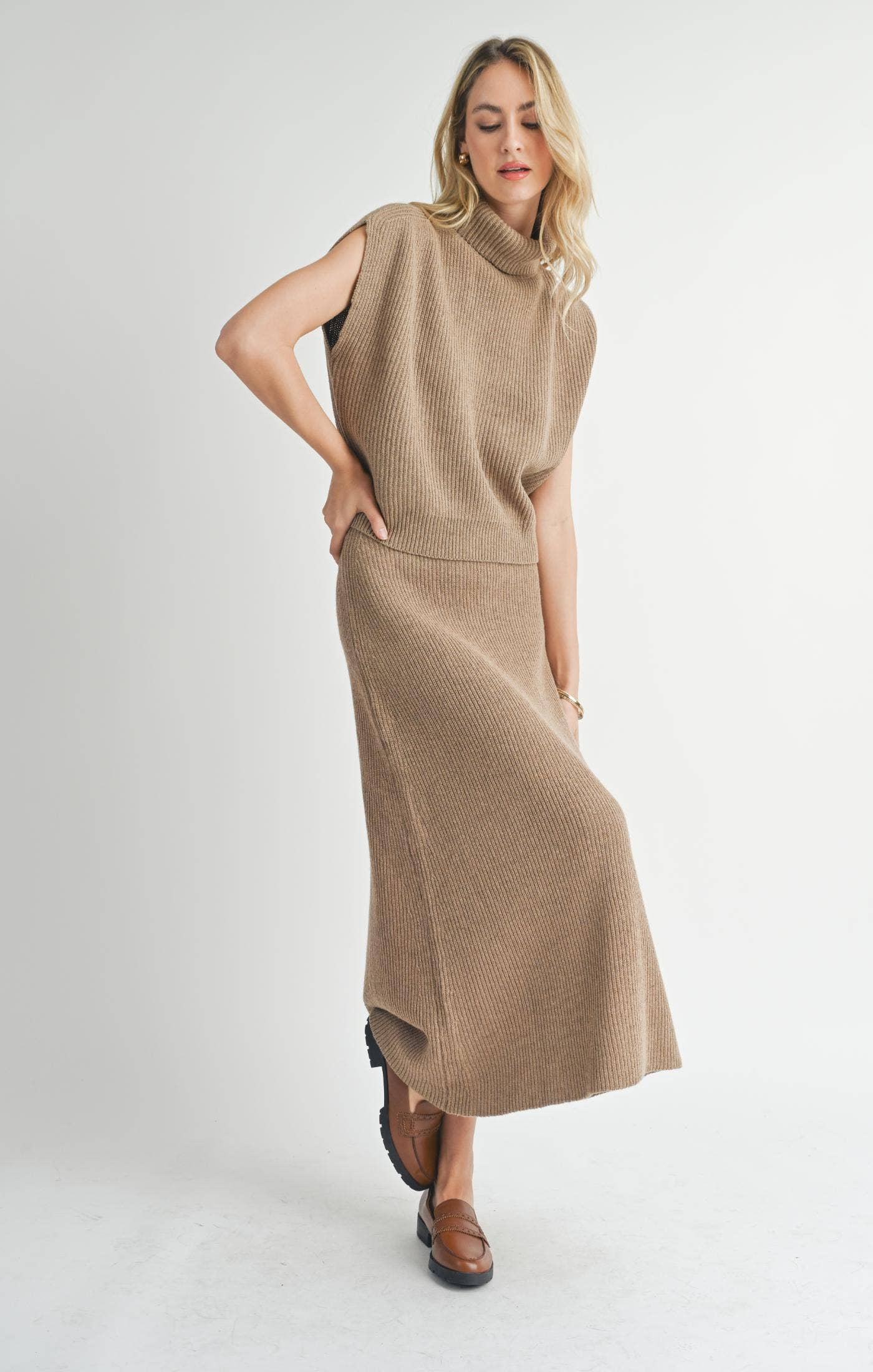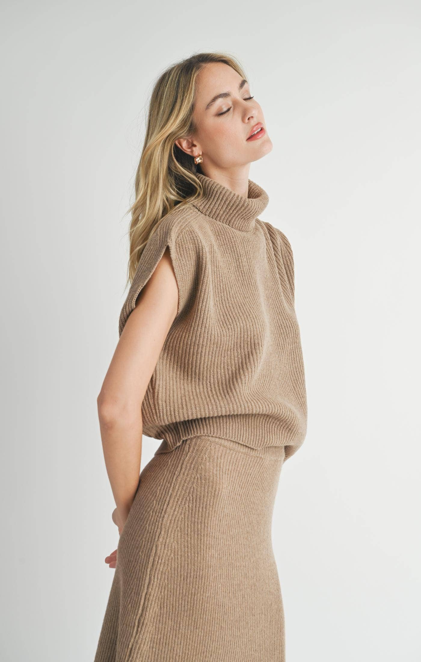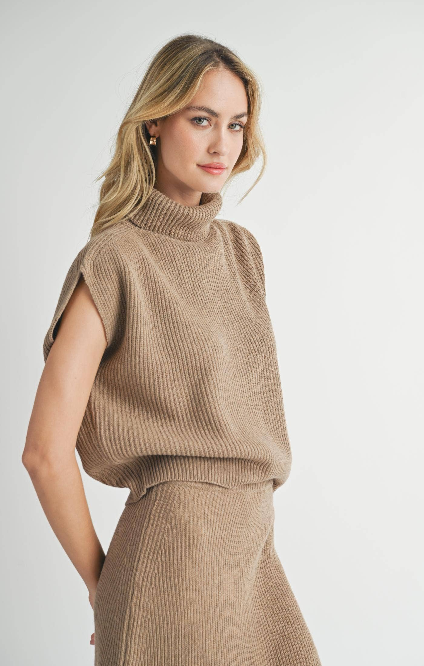 Crosby Ribbed Turtleneck Vest: DARK TAUPE