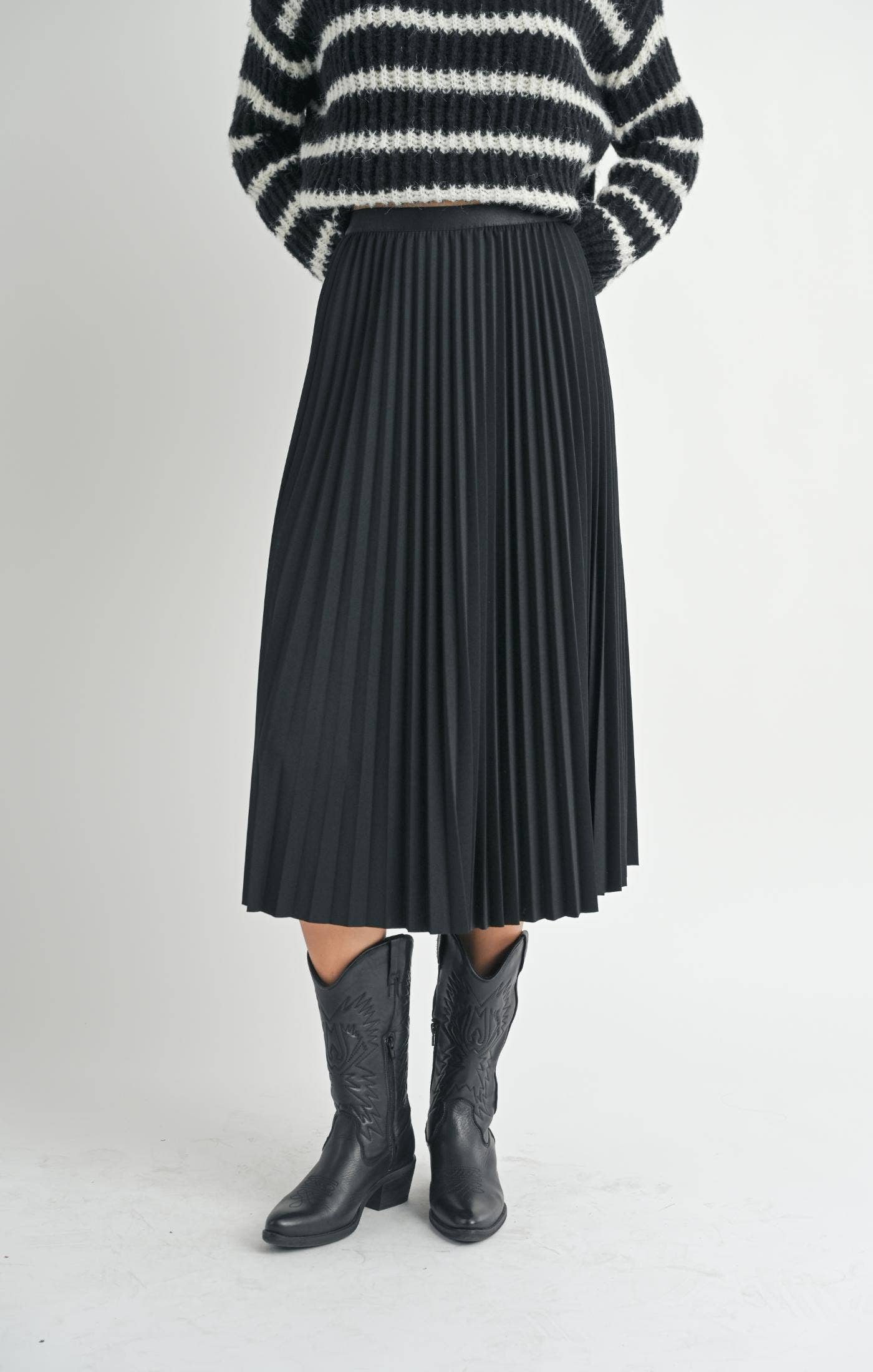 Full Of Charm Pleated Midi Skirt: BLACK