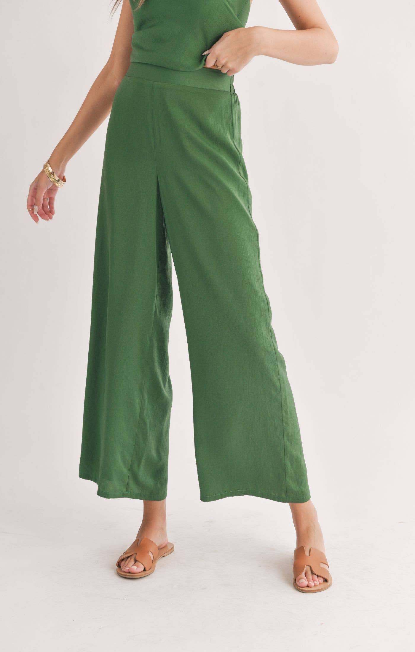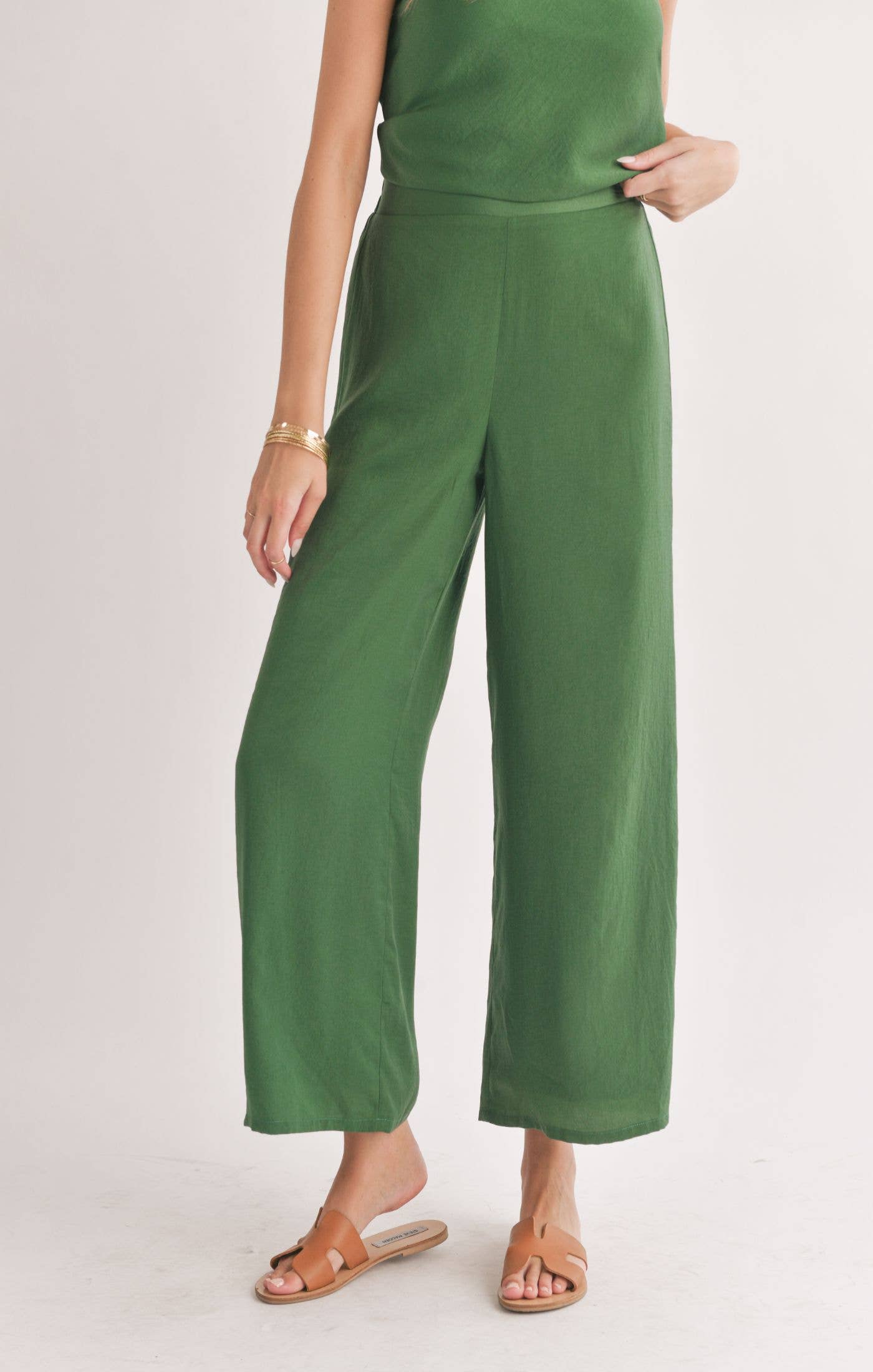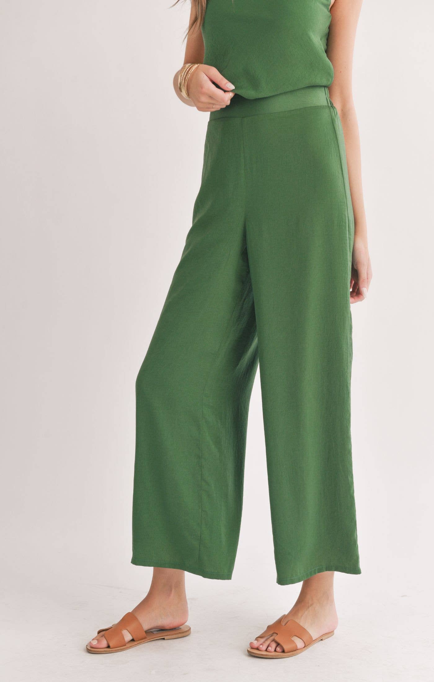 Satin Wide Leg Pants: FOREST GREEN