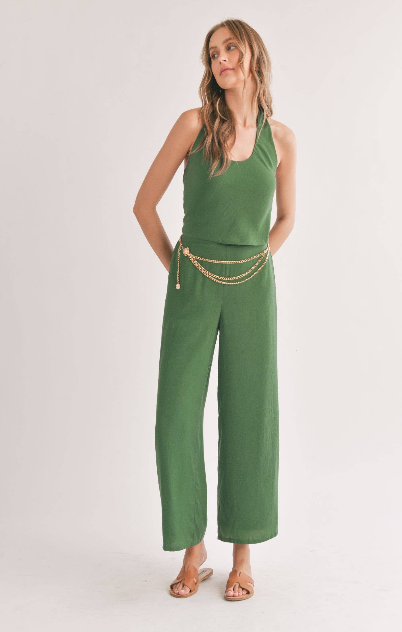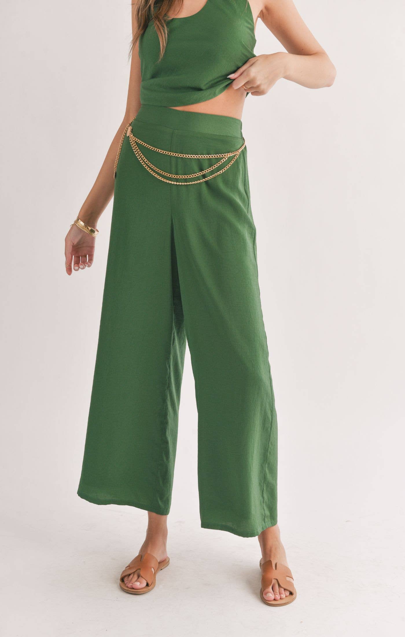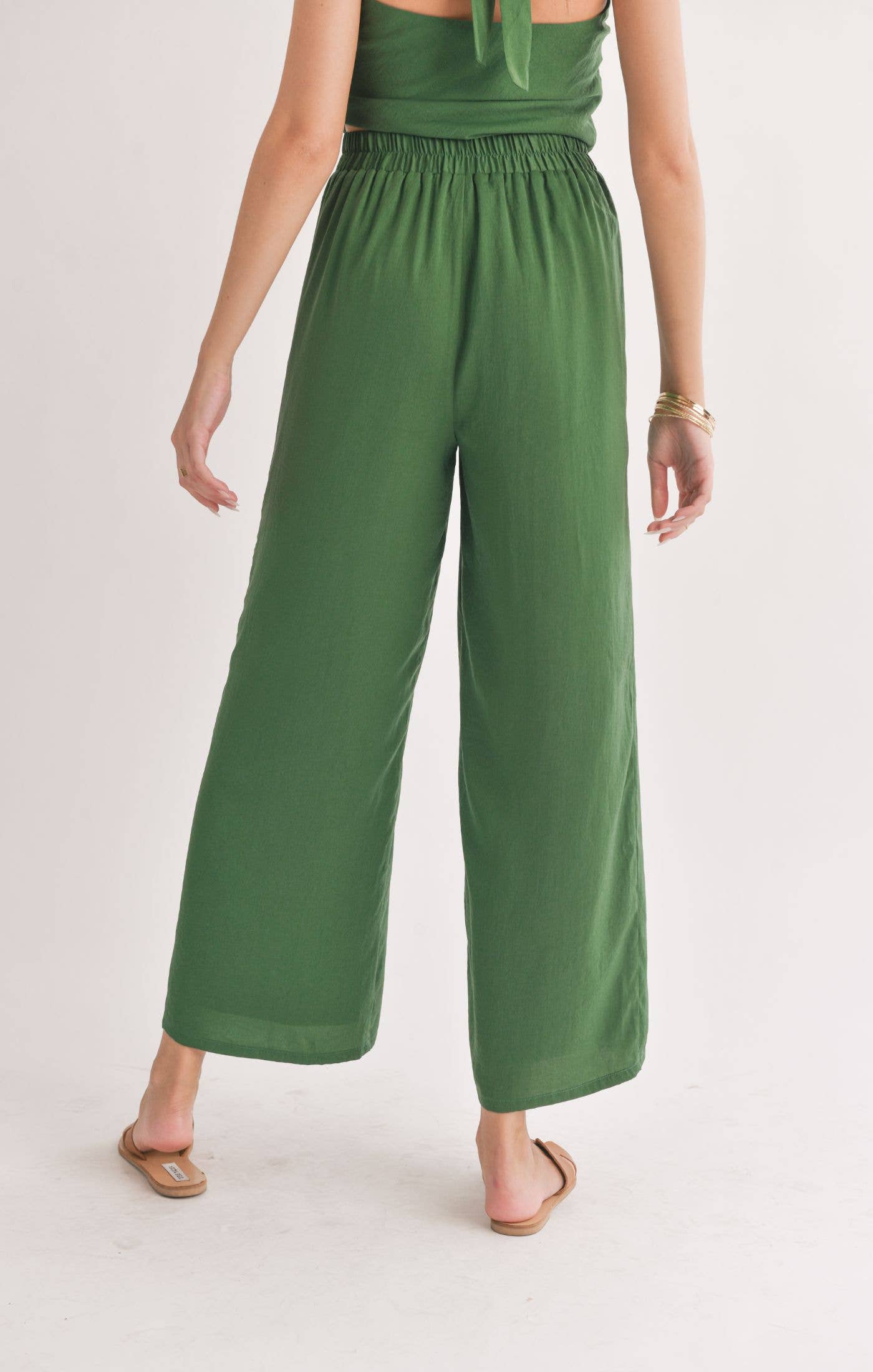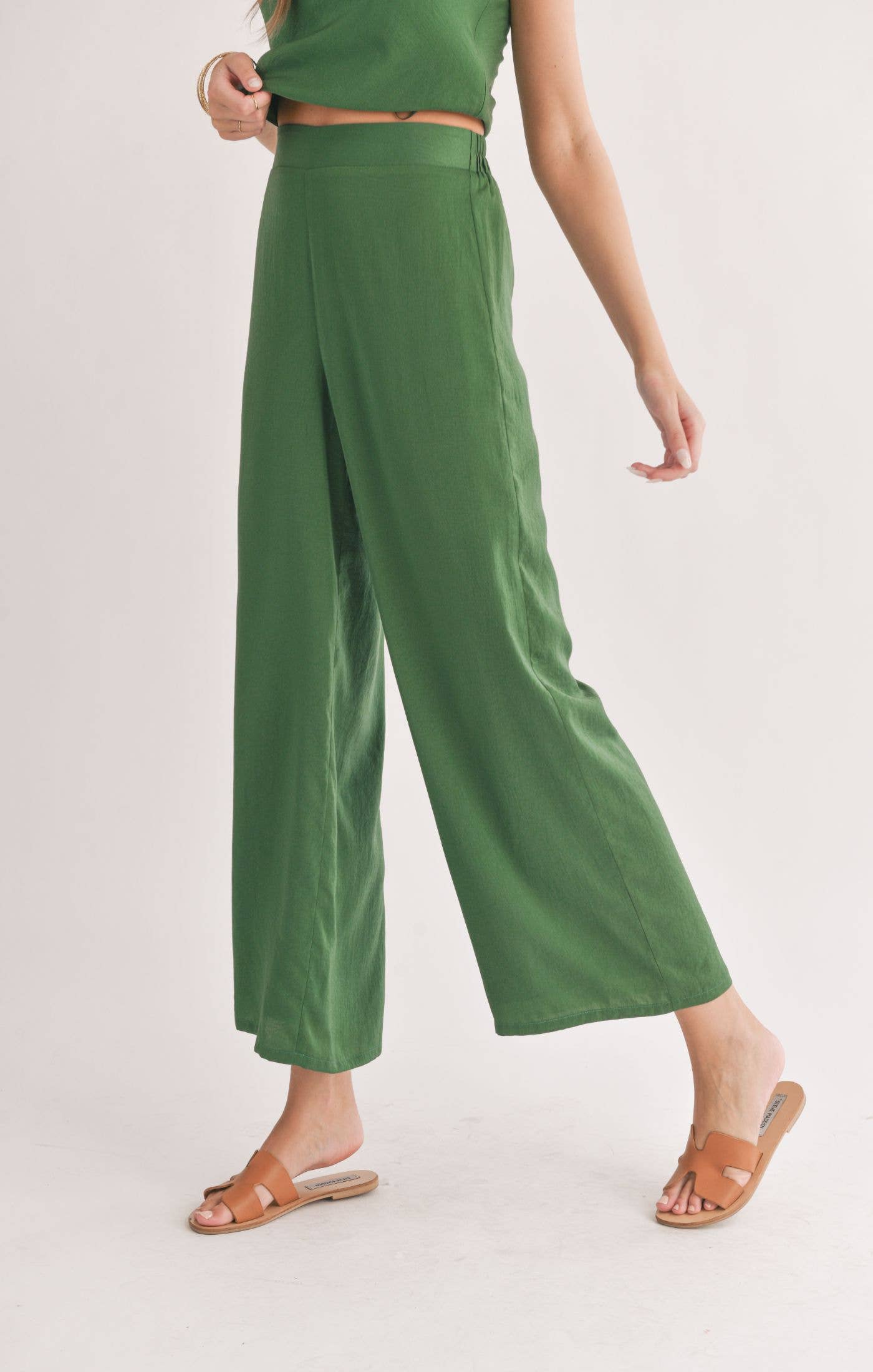 Satin Wide Leg Pants: FOREST GREEN
